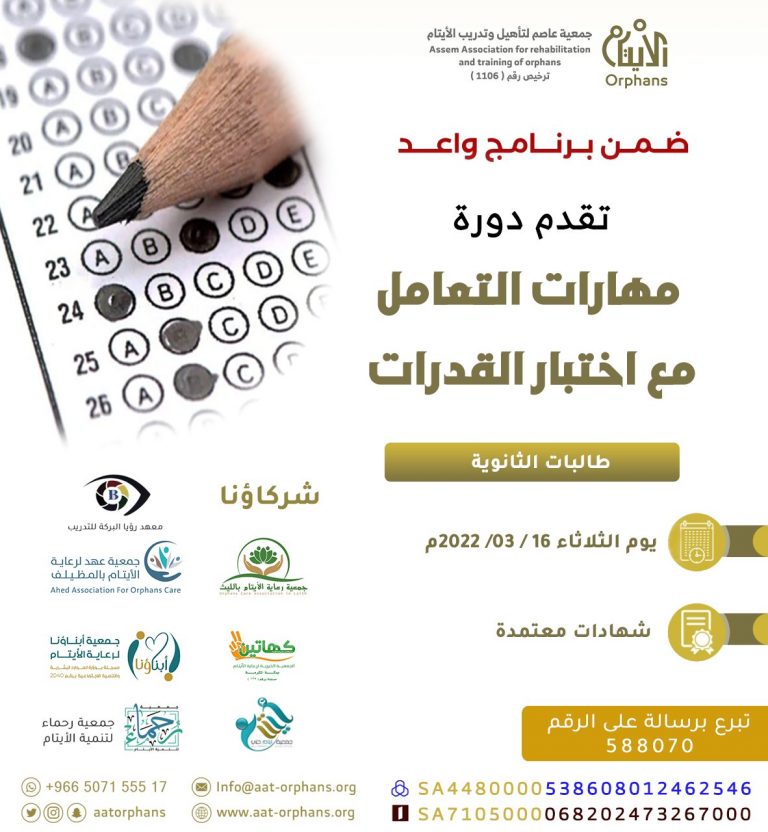 ضمن برنامج واعد ، تقدم جمعية عاصم دورة مهارات التعامل مع اختبار القدرات